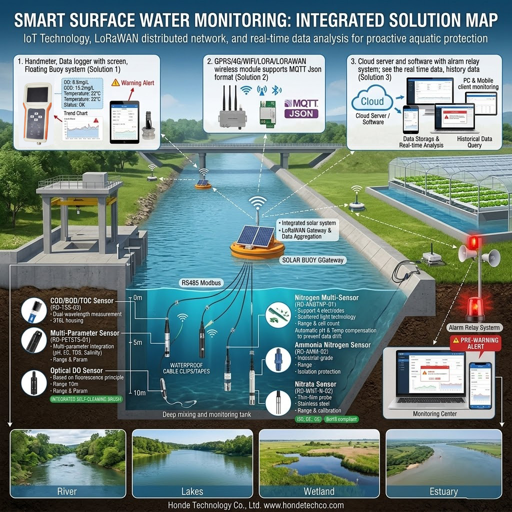 Kutarisa hunhu hwemvura panguva chaiyo, uye nenzira dzakasiyana-siyana ndiyo musimboti wekugadziriswa kwezvakatipoteredza kwemazuva ano uye kutevedzera mitemo yeindasitiri.Mhinduro dzeKutarisa Mvura Yepamusorokushandisa kunyatsoita zvinhu nemazvoMaSensor emvura eIoT(senge COD, BOD, DO, uye Nitrogen probes) zvinopa data rinogara richidikanwa pakuita sarudzo dzesainzi. Nekubatanidza masensa aya muLoRaWAN-powered solar-powered buoy systems, vatariri vanogona kukunda zvipingamupinyi zvechinyakare zvekusvika kwemagetsi ari kure uye kugadzirisa kwakanyanya, vachiona "kuongororwa kwehutano" kwakavimbika kwenzvimbo dzakaoma dzemumvura dzakadai senzvimbo dzine mvura uye nzvimbo dzegungwa.